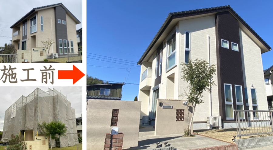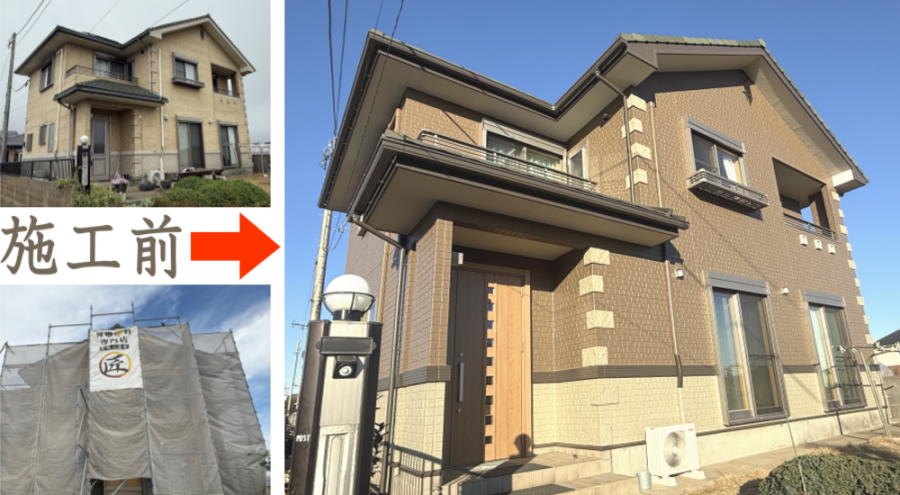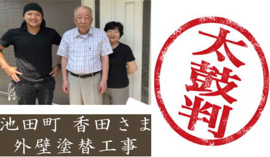お向かいの吉原さんの お家の塗りかえ工事の時に、匠印の工事看板 を目にして、時間をかけて丁寧にきれいに工事してみえたので、吉原さんに紹介してもらい依頼をしました。工事を決めてから半年、順番を待ちましたが人気がある意味が理解できました。納得できるほどの丁寧できれいな完成。紹介してもらって本当